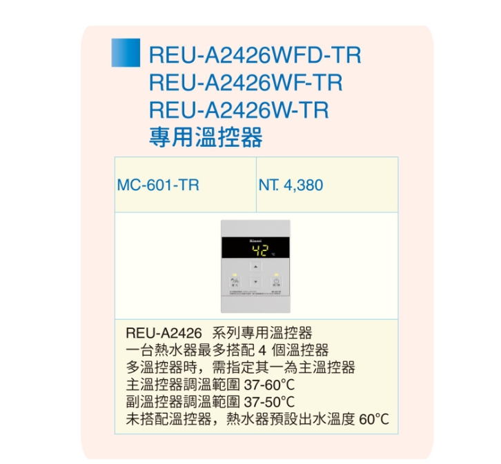 A2426/E2426/A3200專用有線溫控器 MC-601-TR